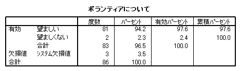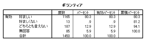 となっており、全体の85.0%がボランティア参加を「よい」としている。ただし、ここでいうボランティアは特に対象を限定していない。