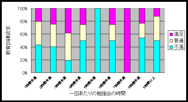ここで、勉強時間が3時間の場合に、職員の教育訓練欲求がもっとも満たされているという結果が得られた。